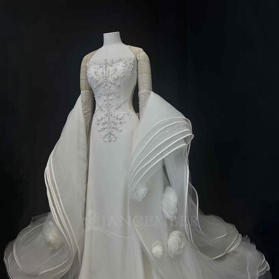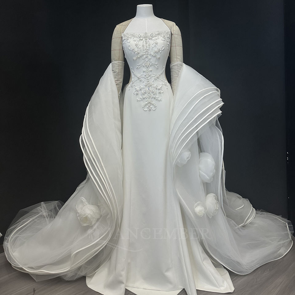Nt27 Luxury Modern Satin Appliques Wedding Dress Chapel Train White Bridal Gown Ball Gown Style for