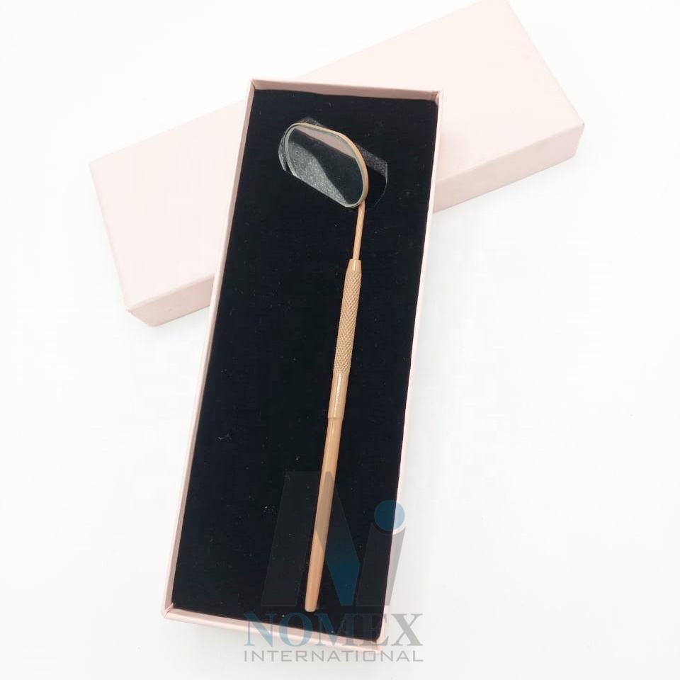 Custom Logo Beauty Tool-Nude Brown Powder Coated Shaped Eyelash Extension Mirror Comfort Grip at Wholesale Prices