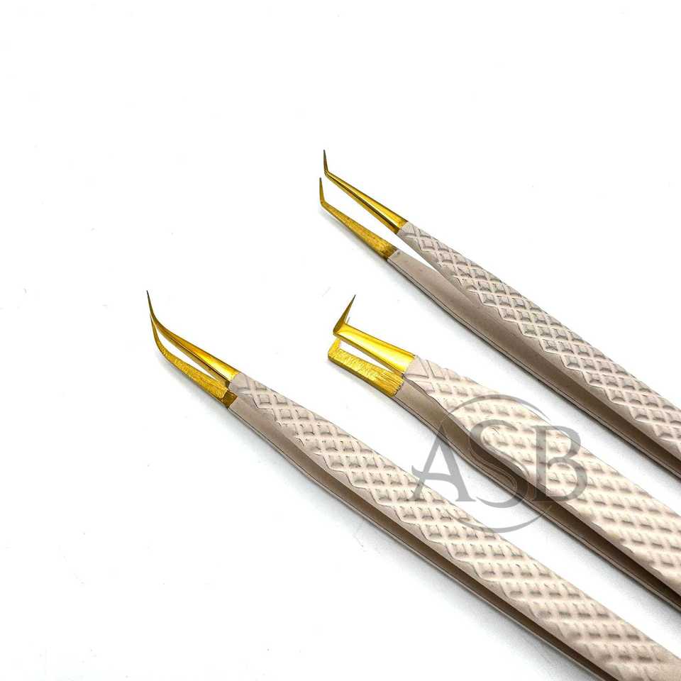 Nude Gold Lash Tweezers 90 Degree Slim Boot 45 Degree And Curved Isolation Custom Logo Beauty Tool OEM