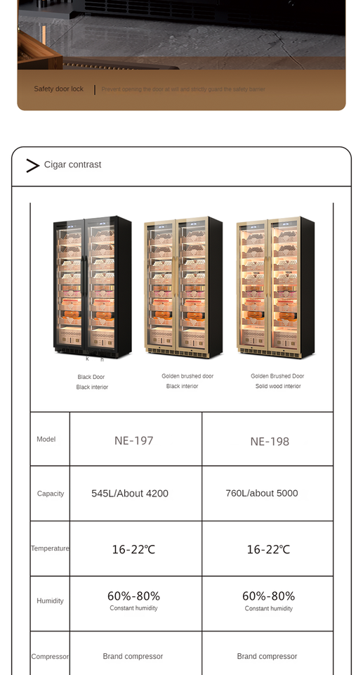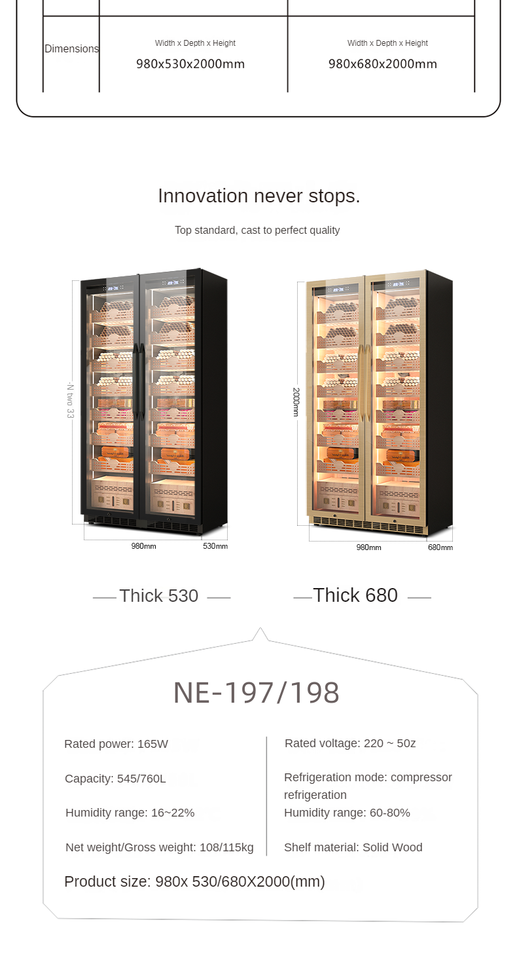Nuelead NE-197 545L Cabinet Two Glass Door 4400 Display Humidity Cigar Cellar