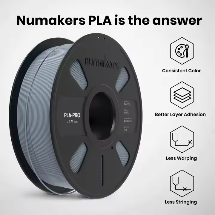 Numakers Best Quality 1kg PLA Pro Light Gray 1.75mm 3D Printing Filament Plastic Rods for Smooth Durable and Precise Prints