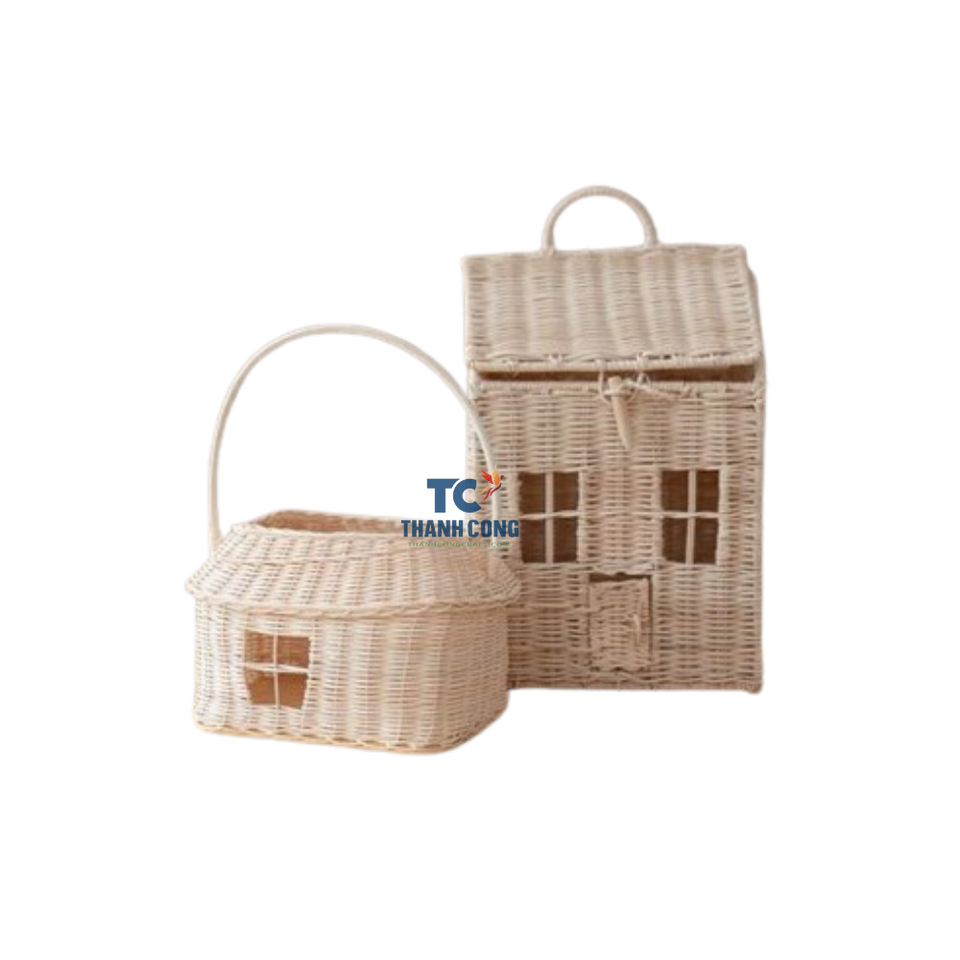 Nursery Decor Rattan House for Kids 2-6 Years Old Double Tier Multifunction Toy Box Natural Rattan Storage Baskets