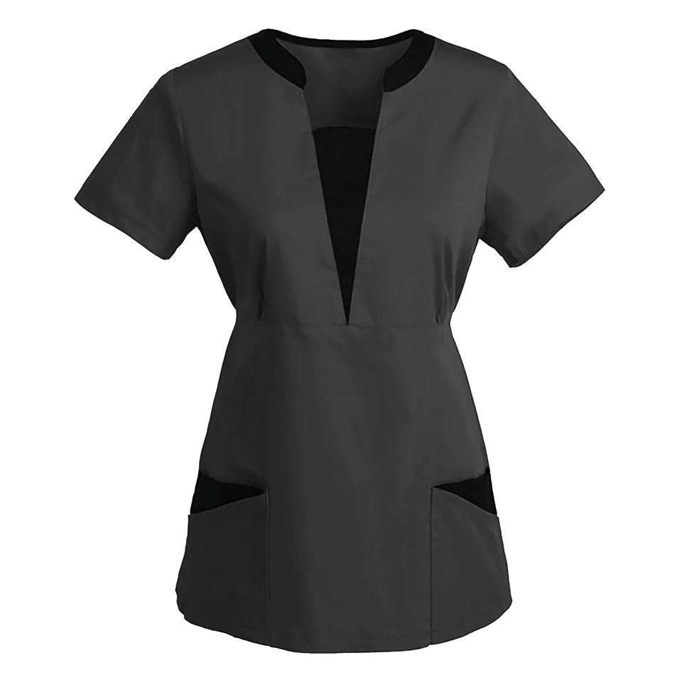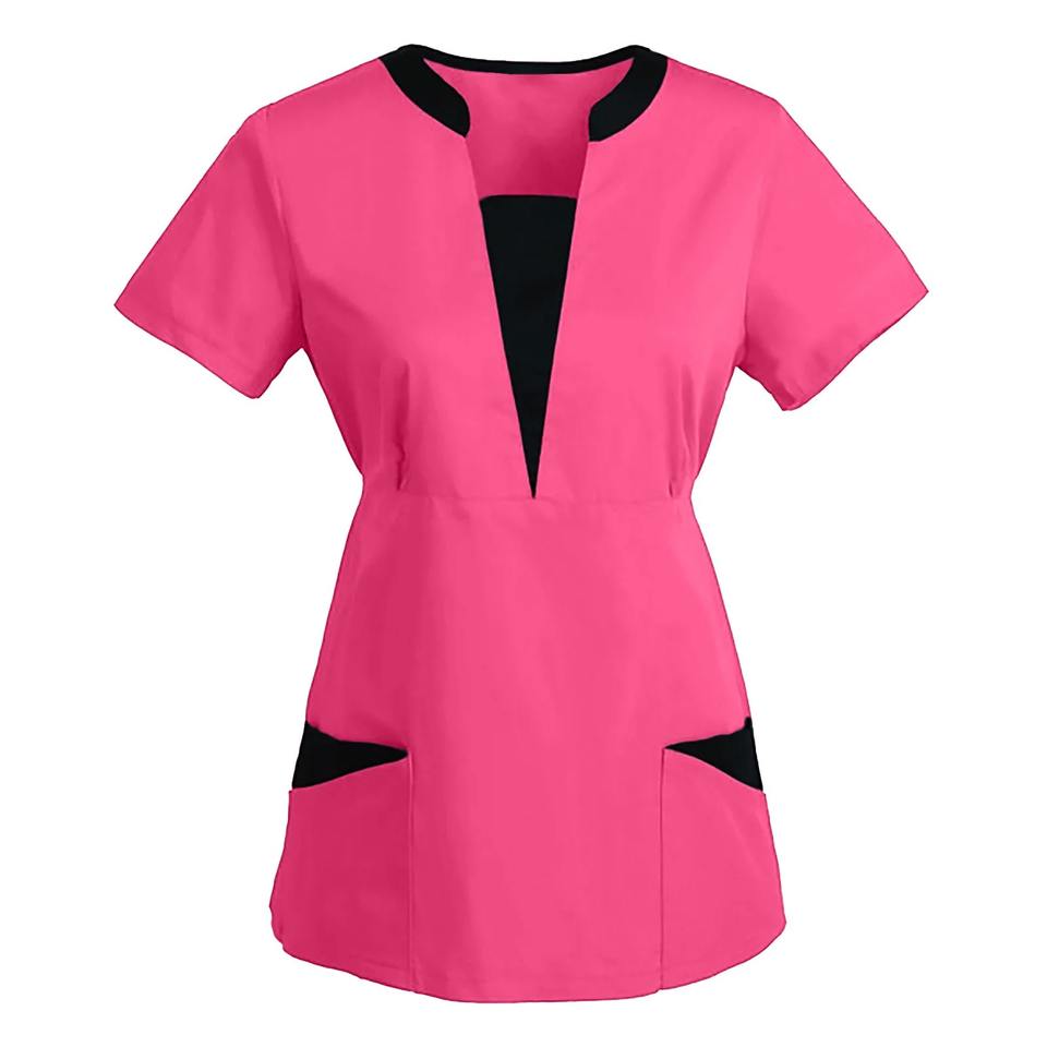 Nursing Uniform Women Tops Short Sleeve V-neck Work Uniform Solid Patchwork Color Pockets Blouse Nurse Work Uniform Accessories