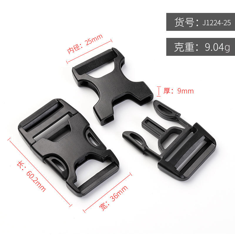 Nylon Buckle Bag Accessory 25mm Inner Diameter Black Plastic Backpack Safety Buckle Webbing Waist Harness Clip