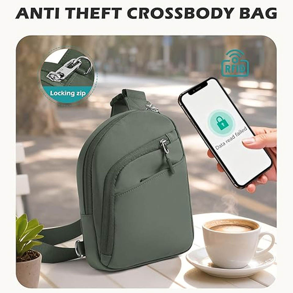 Nylon Crossbody Bag Zipper Multi-Zip Pockets Water Repellent Single Strap Lightweight Thermal Fashion Shoulder Bag for Outdoor