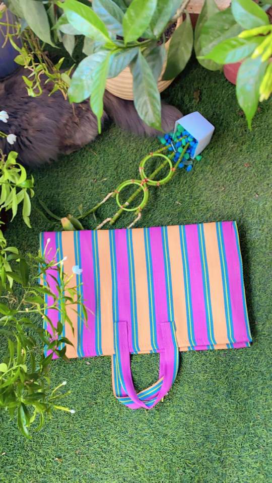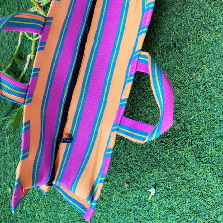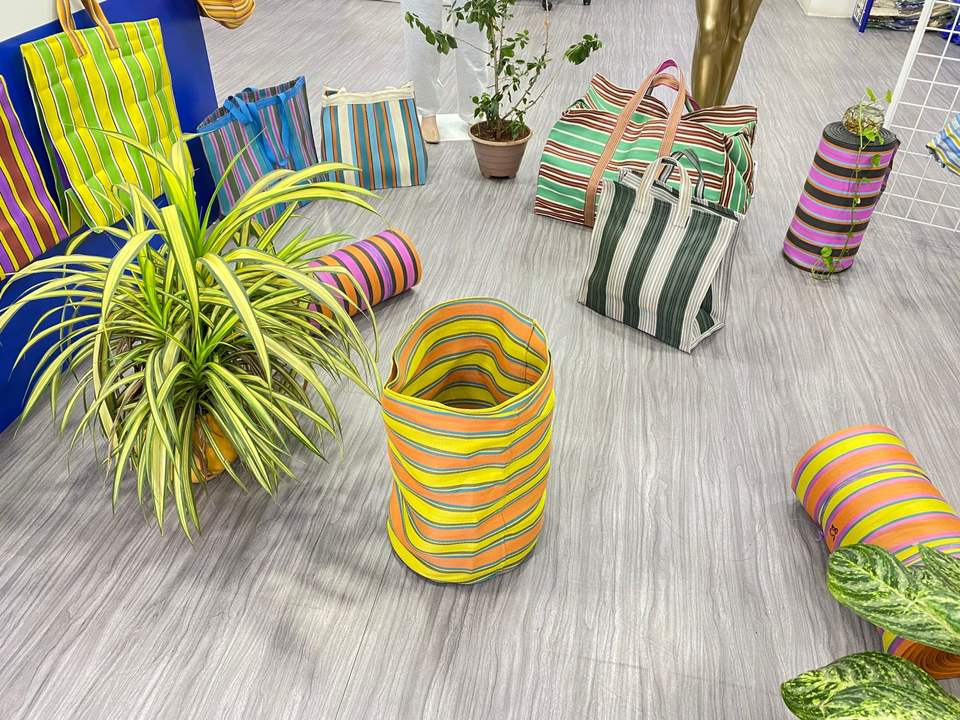 Nylon Eco-Friendly Woven PP Striped Shopping Bags Sustainable Recycled Polypropylene Plastic Handloom Made India Recycled