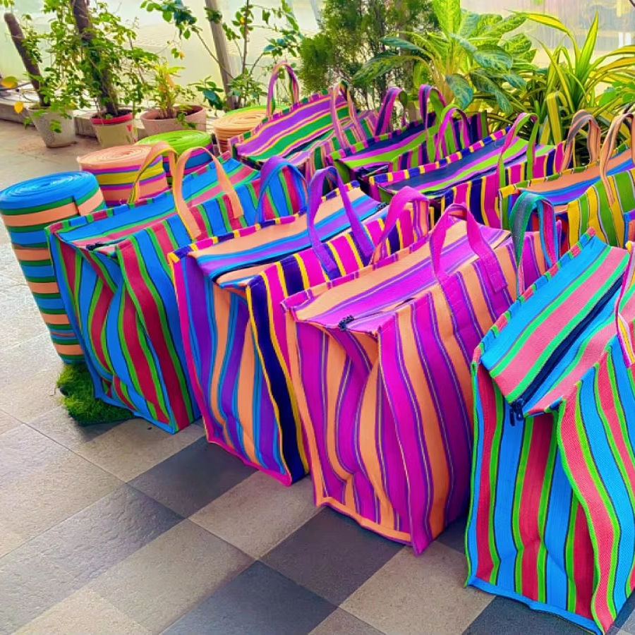 Nylon Recycled Beach Bags woven striped handmade Indian traditional unique bags manufacturer and supplier exports