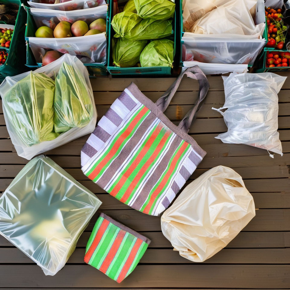 Direct Manufacturer's Handmade Recycled Nylon Beach Bags Woven Striped Pattern Unique Indian Traditional Style Reusable Pouches