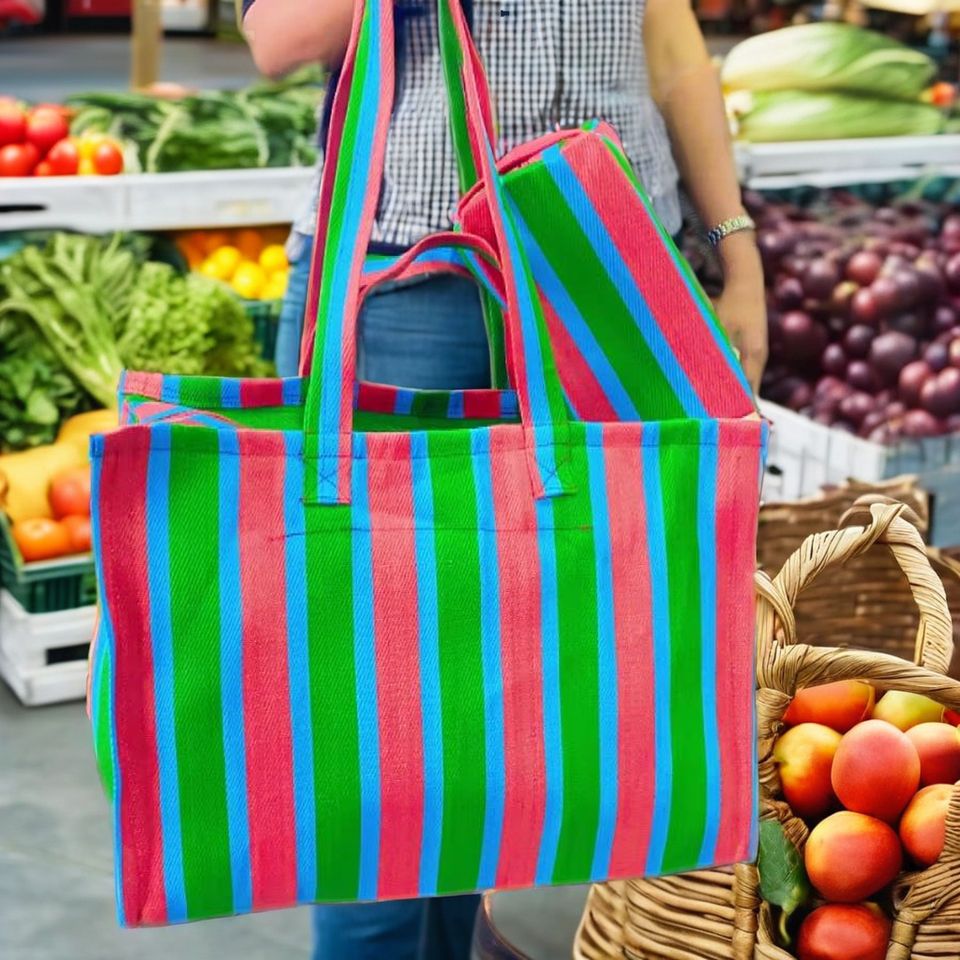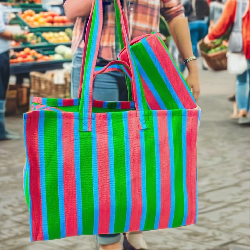 Nylon Recycled Woven PP Eco-friendly Reusable Shopping Bags Supermarket Use Striped Pattern Made in India Bulk Options