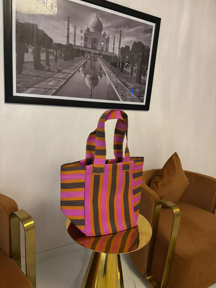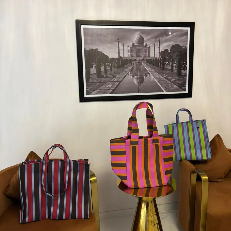 Nylon Recycled Woven PP Eco-friendly Shopping Bags Sustainable Striped Pattern Made in India-Bulk Options