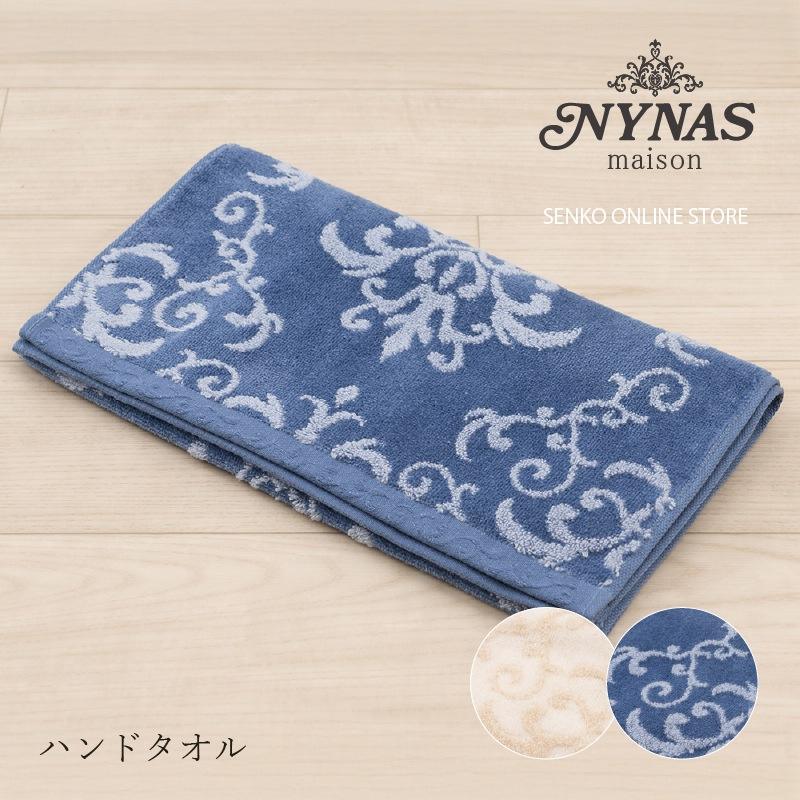 Nynas Maison Royal Palace Hand Towel Approx. 34×80cm Royal Beige/Royal Navy Blue Woven Cotton Square for Home Hotel for Kitchen