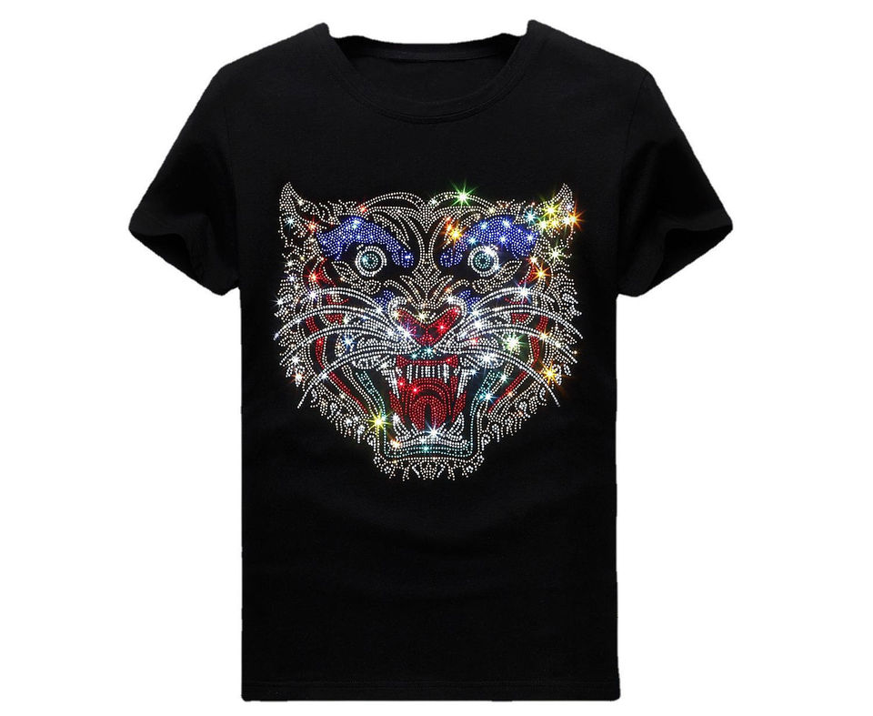O-Neck Men s Heavyweight Cotton T-Shirt Rhinestone Design Oversized Short Length Knitted Customized Diamond Logo Pattern Casual