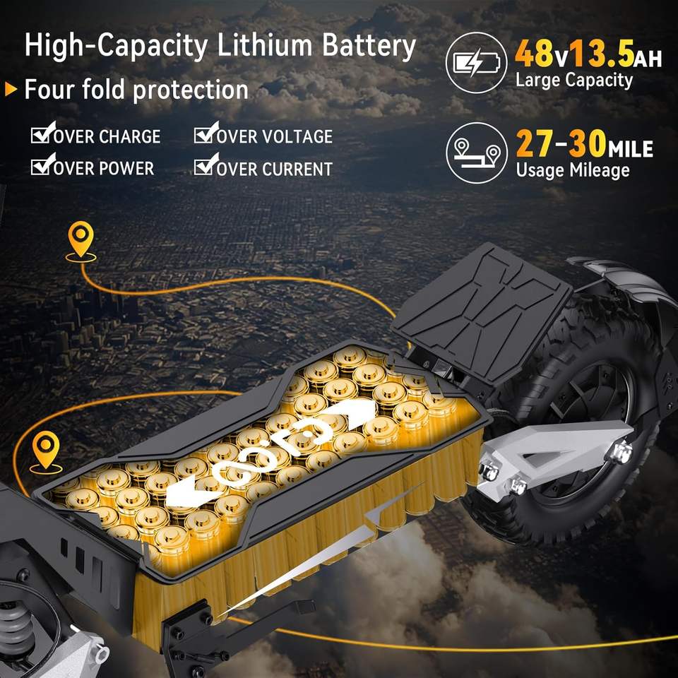OBARTER 48V 900W Motor Electric Scooter for Adults Top Speed 31 Mph 11\" Off-Road Tires Double Disc Brake Foldable 25-50km/h