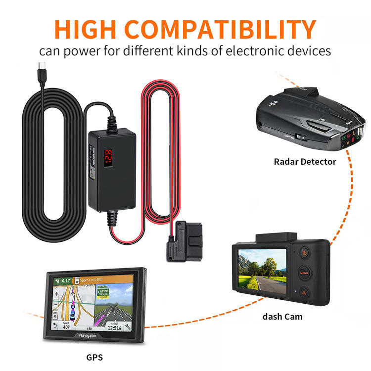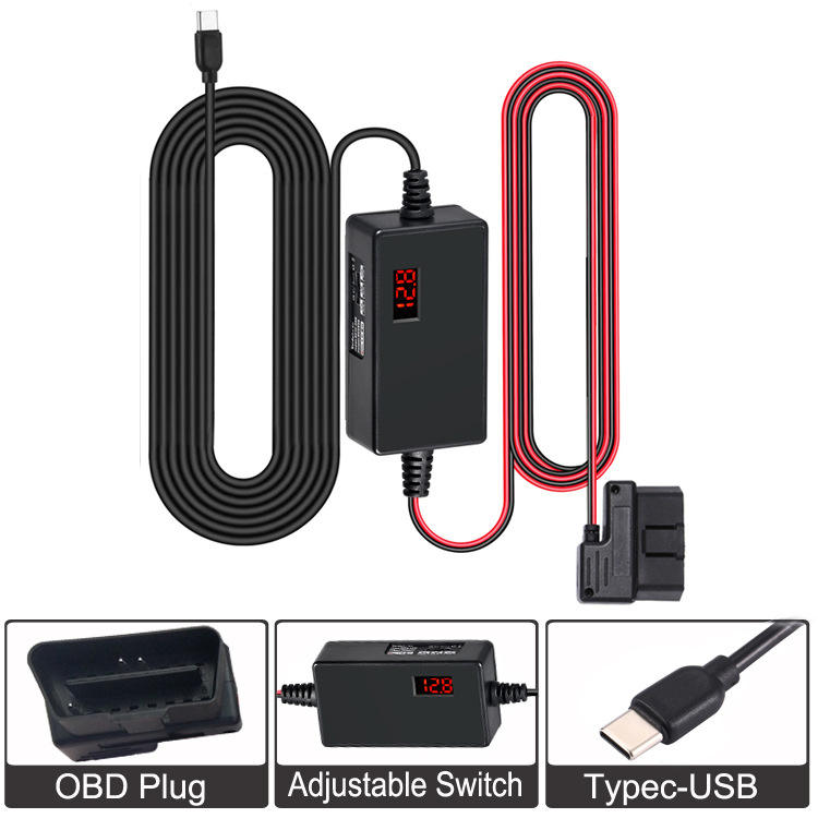 OBD2 digital display step-down cable automotive dashcam parking monitoring cable low voltage power cut-off adjustable L153