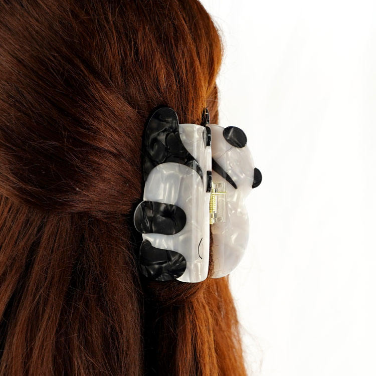 OBM 9.3cm Cute Splicing Cat and Panda Animal Claw Clip Engraved Paint Acetate Hair Claw Wholesale Customize Hair Clip Women