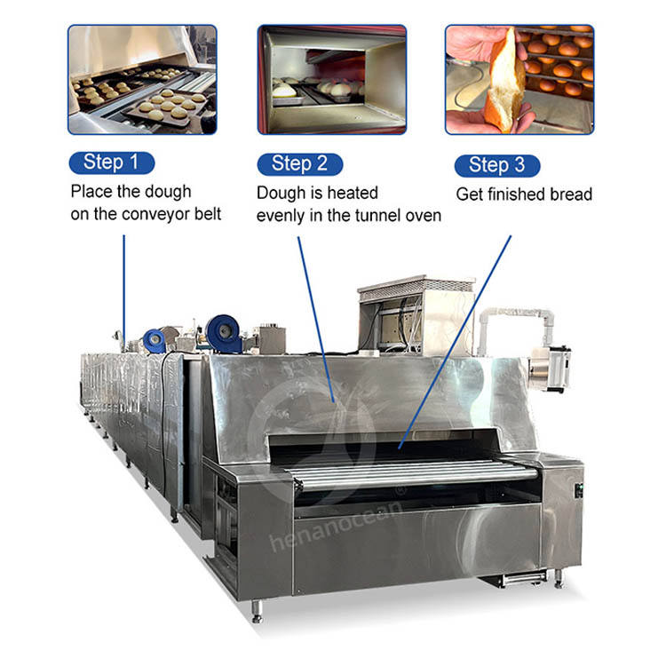 OCEAN Continuous Conveyor Small Pita Bread Cookie Hamburger Bake Cake Gas Biscuit Tortilla Tunnel Oven for Bakery