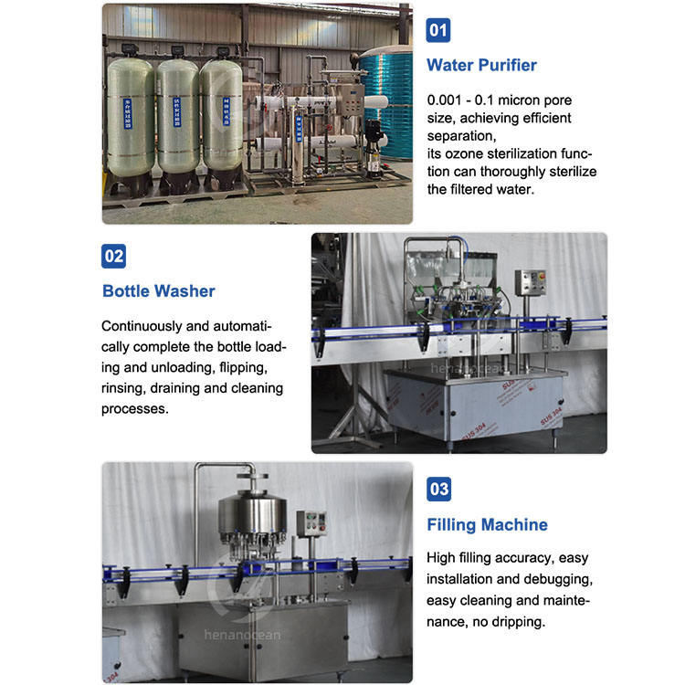 OCEAN Glass 750ml Drink Water Bottling Plant 6000bph Sparkling Bottled Water Production Line