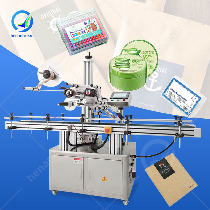 OCEAN High Speed Automatic Shipping Barcode Lip Balm Plastic Pouch Bag Carton Label Applicator for Sachet