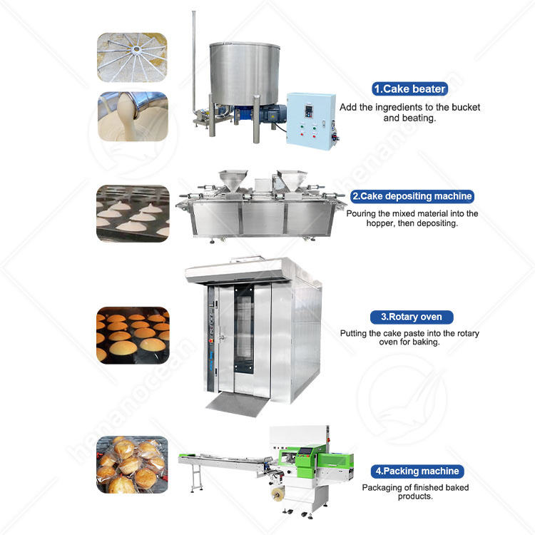 Related machine:cake beating machine, depositing machine, oven, cream whipping machine