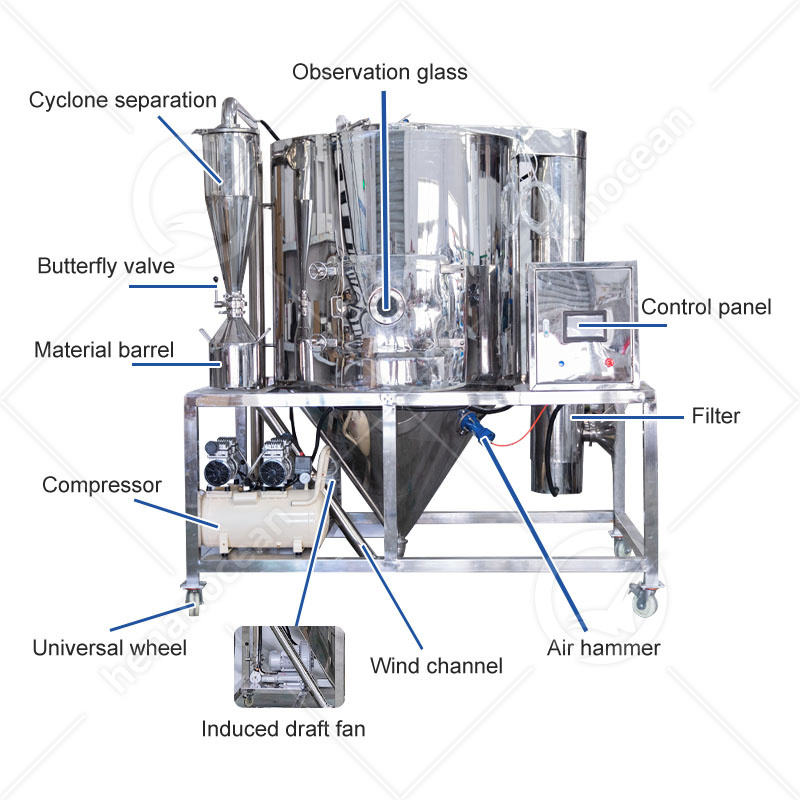 OCEAN Stainless Steel Tomato Powder Spray Drying Machine Electric Rotary Atomizer Yeast Extract Spray Dryer