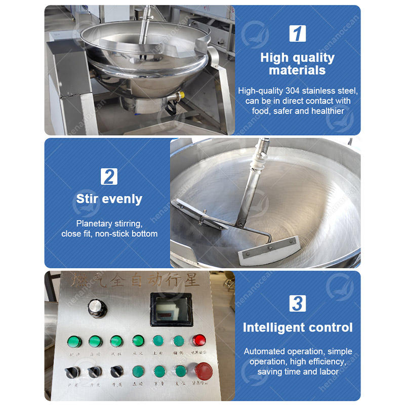 OCEAN Steam Jam Jacketed Kettle Automatic Self Stir Candy Cook Pot Gas Sauce Cook Mixer Machine