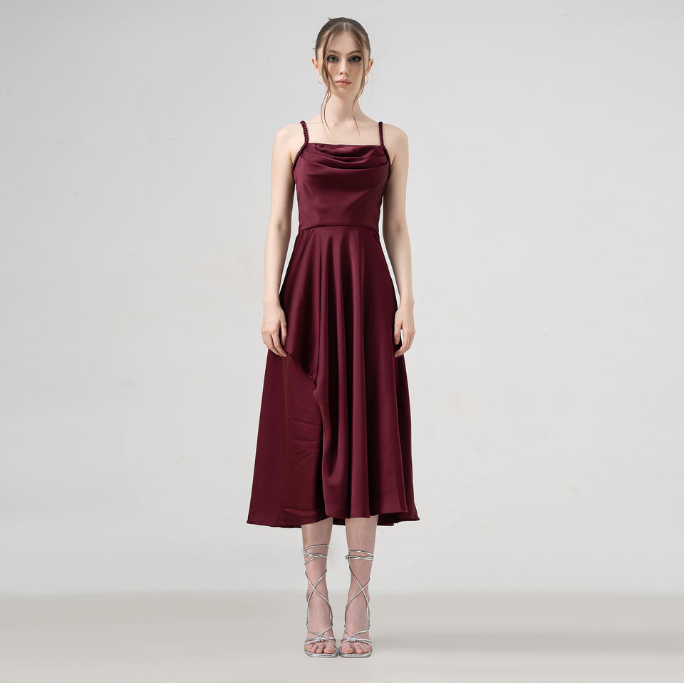 Technics:Satin midi dress with A-line cut and built-in padding.