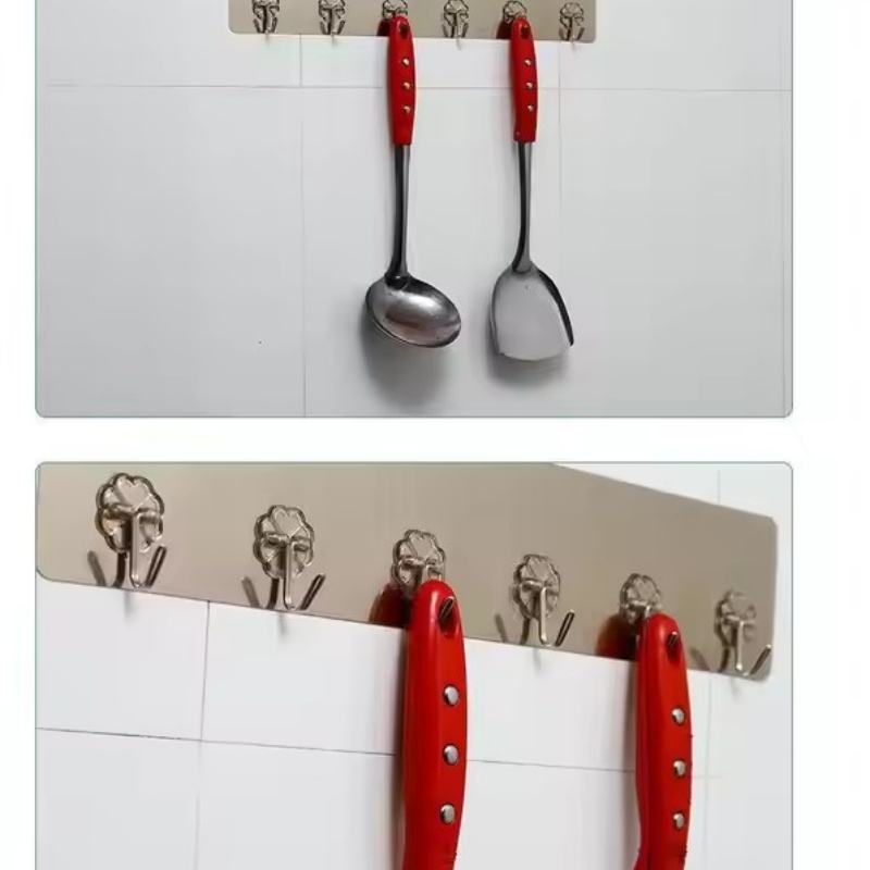 4-Hook Adhesive Broom Holder Metal and Steel Organization Accessory for Bathroom and Kitchen for Home Tool Storage Box Packed