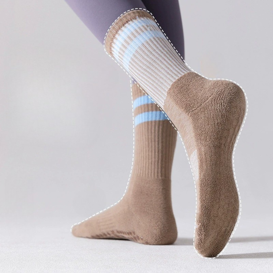 ODM Custom Cotton Grip Socks Crew Style Double Stripe Yoga Sole Dot Anti-Slip Breathable Quick-Dry Sweat-Absorbent Daily Use