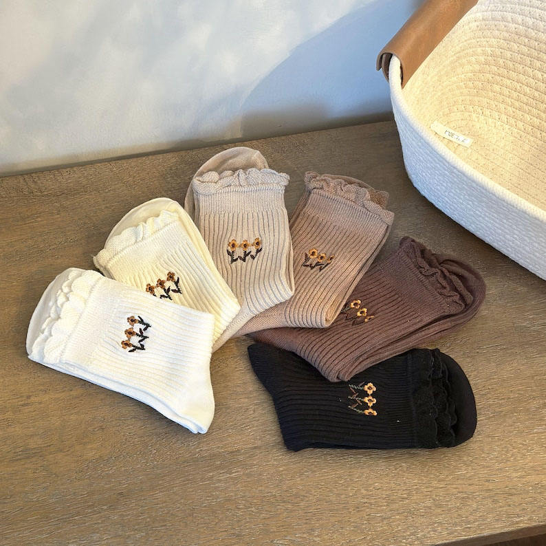 ODM Custom Cotton Sports Socks With Embroidered Logo Soft Ruffle Design Crew Socks Fashionable Comfortable Daily Wear For Women
