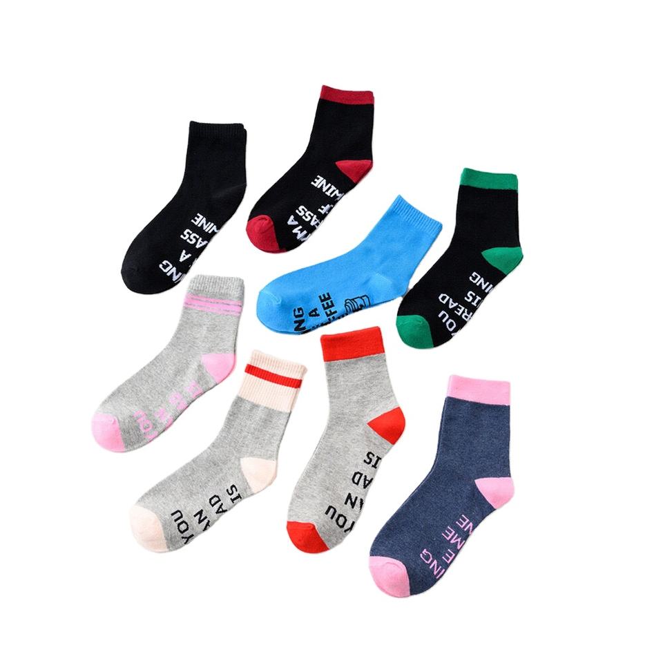 ODM Custom Print Text 2 tone Crew Socks Cotton Breathable Multi Color Funny Sock for Men Women Casual Wear Vietnam Factory