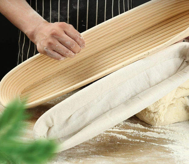 ODM Handmade Long Natural Rattan Bread Proofing Basket Baking Paper Mold Manufacturer Vietnam FRENCH BAGGETUE