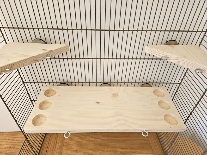ODM OEM Modern 38cm Jumbo Treat Ledge Triangle Corners (3pcs) Wood Natural Enrichment Platform Shelf for Rat Pet Interactive