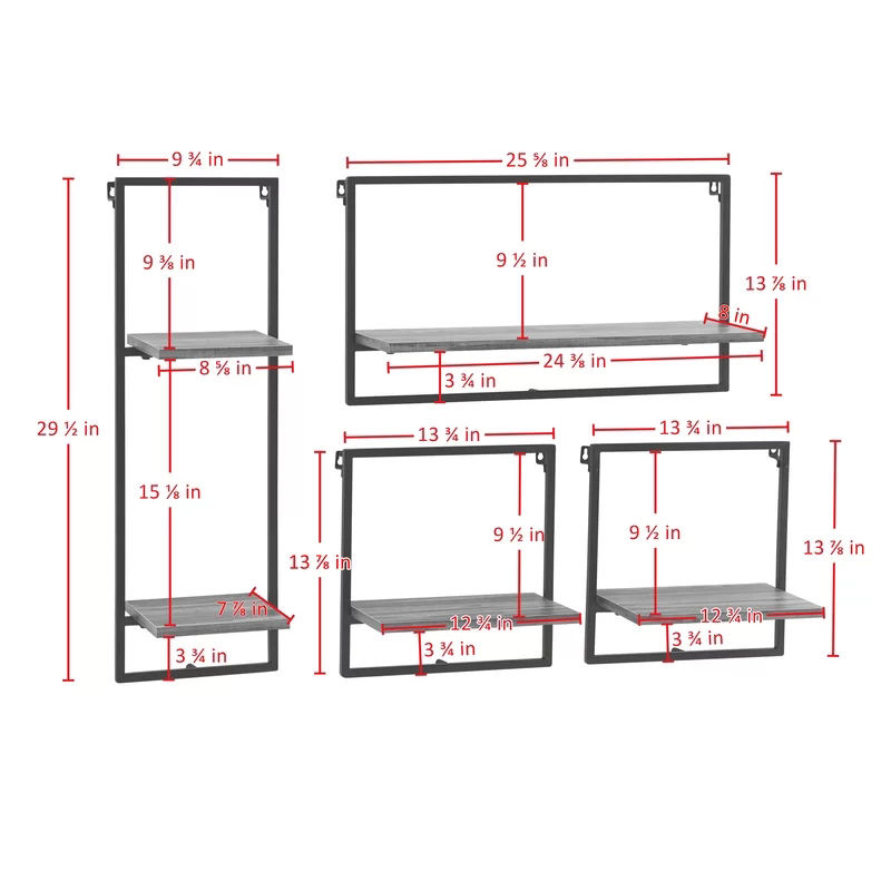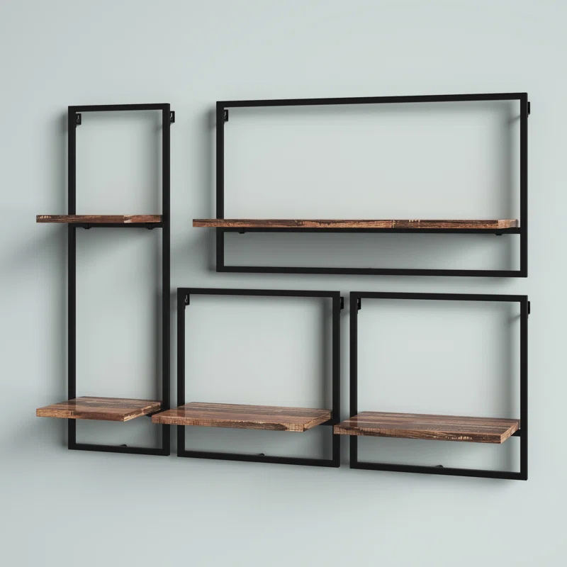 ODM OEM 4-Piece Open Iron Frame Wall Shelving Floating Display Shelves for Living Room Home Storage & Organization