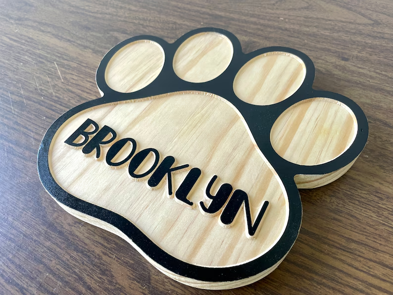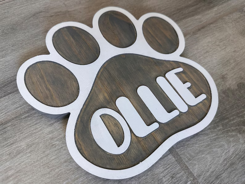ODM OEM Carved Wood Dog Name Sign Personalized Pet Paw Bone Gift Custom Home Dog House Decor for Housewarming Christmas Present