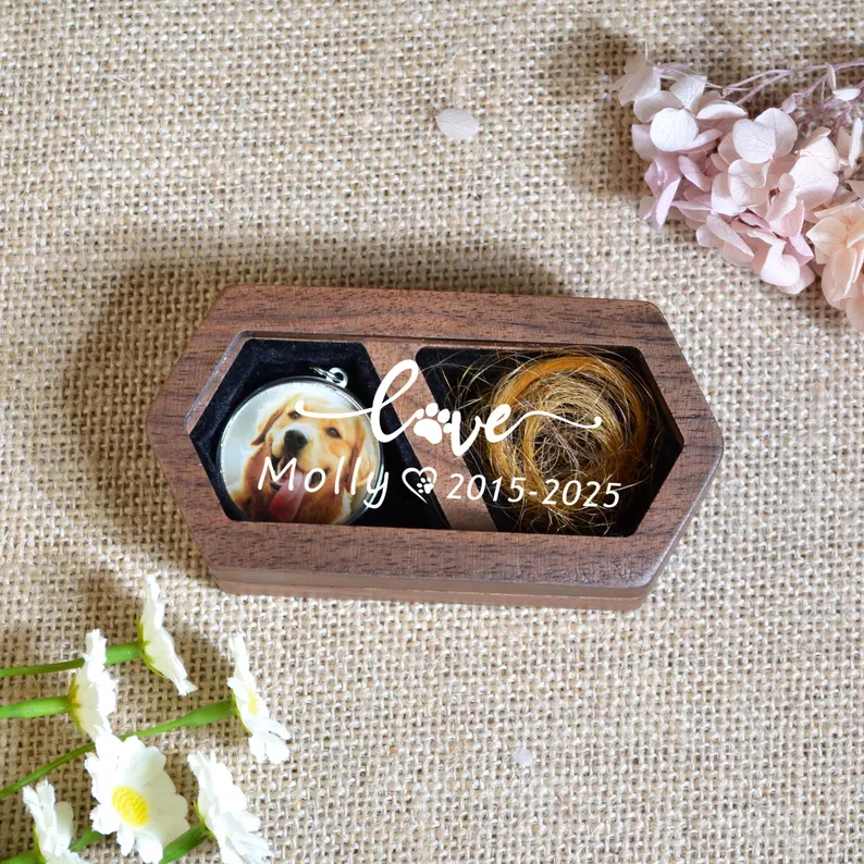 ODM OEM Custom Wooden Pet Fur Keepsake Personalized Pet Loss Sympathy Gift Dog Memorial Cat Urn Pet Caskets & Urns