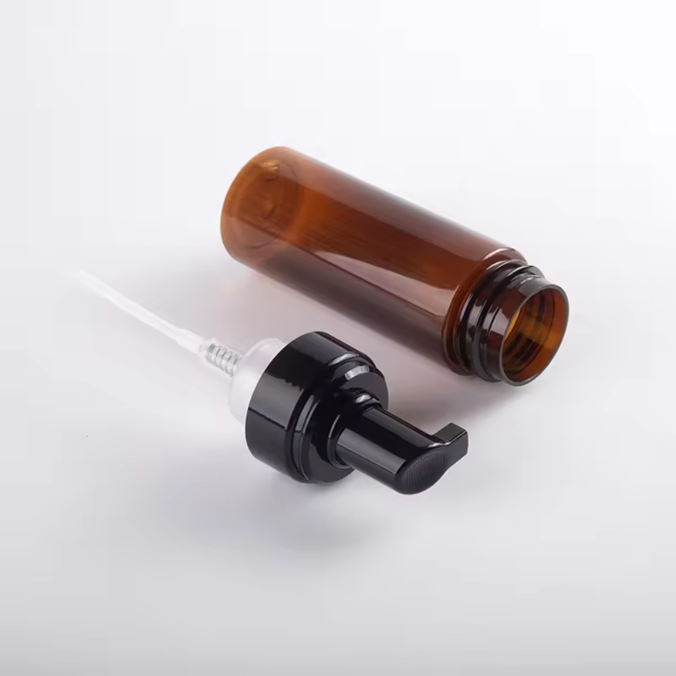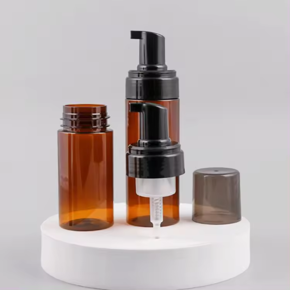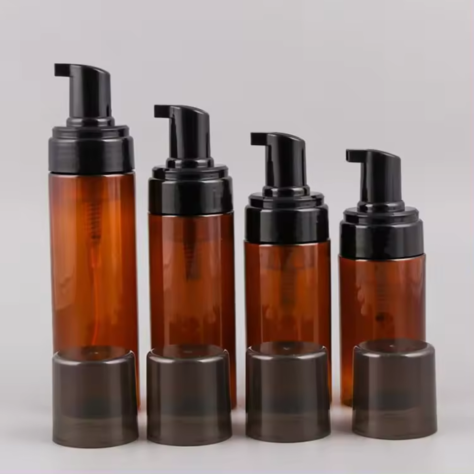 ODM OEM Factory Price Foaming Bottle 150ml 200ml PET Face Cleanser Liquid Foaming Pump Bottle Brown Foam Bottle With Brush