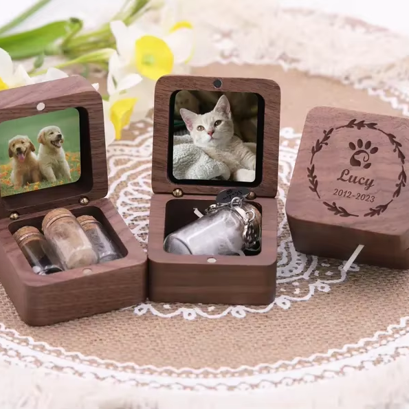 ODM OEM Handcrafted Wooden Pet Memorial Custom Cat Dog Loss Gift Personalized Pet Fur Urn Pet Sympathy Ashes Keepsake Box