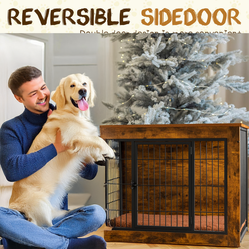 ODM & OEM Heavy-Duty Dog Kennel Furniture Vintage Style Crate with Thick Cushion & Double Doors for Small to Large Dogs