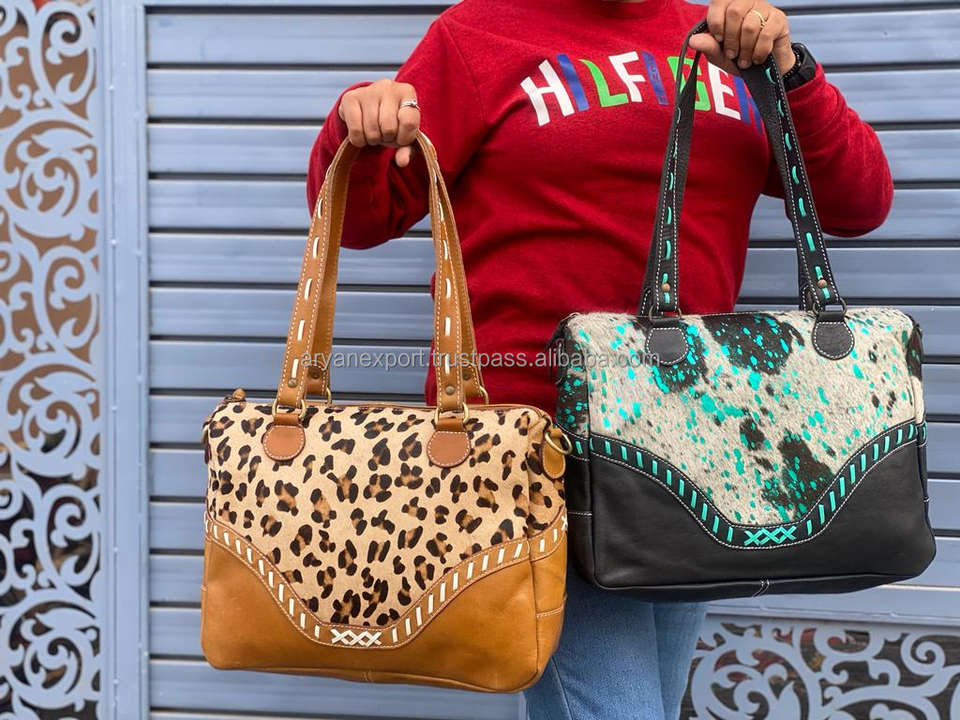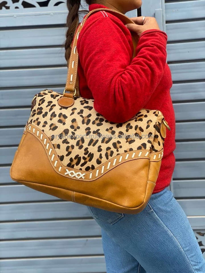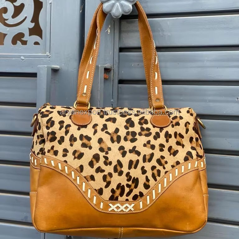 ODM OEM High Quality Hair on Leopard Print Cowhide Leather Women's Tote Bag Manufacturer Genuine Leather Shopping Shoulder Bags