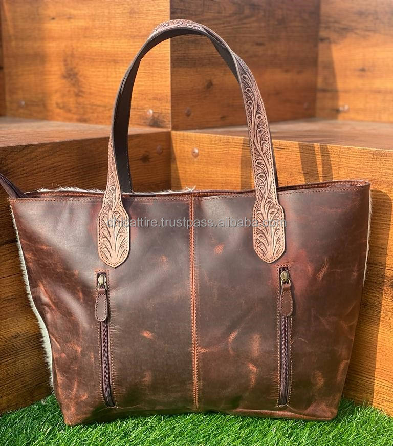 ODM OEM High Quality Hand Tooled Leather Women's Conceal Carry Tote Bag Manufacturer 2024 Genuine Cow Leather Crossbody Handbags