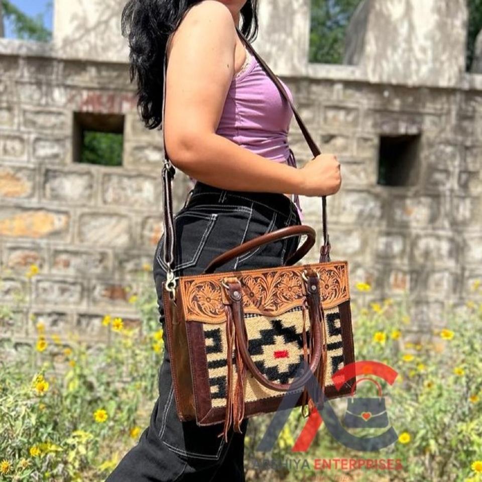 Product name:Hand Tooled Aztec Saddle Tote Bags