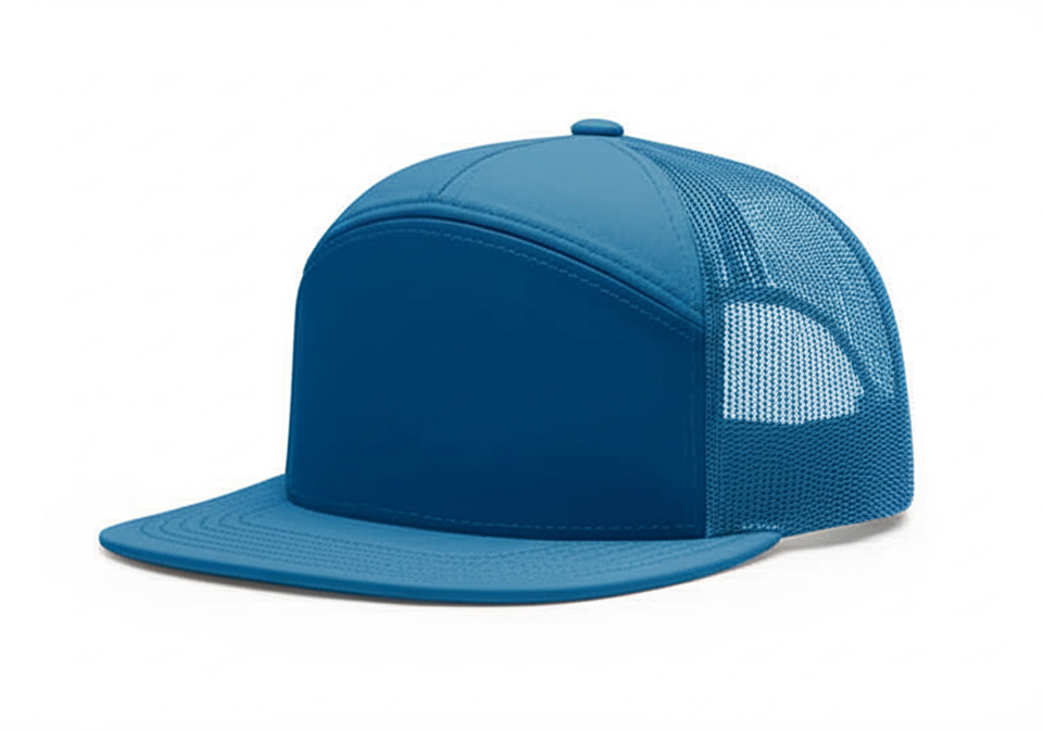 Low Tax Structured 7 Panel Plain Trucker Hat Mesh Flat Brim Snapback Custom Logo Solid Blank Sport Cap For Men Women Running Cap
