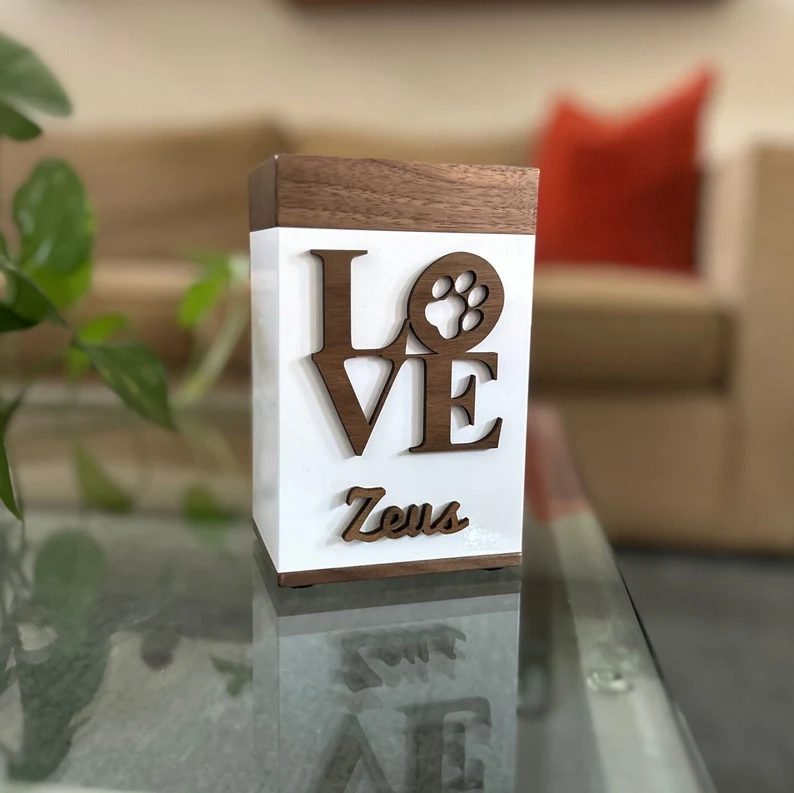 ODM OEM Luxury Modern Dog Urn Paw Name Personalized 50 LBS Memorial Eco-Friendly American Walnut Wood Warm Remembrance
