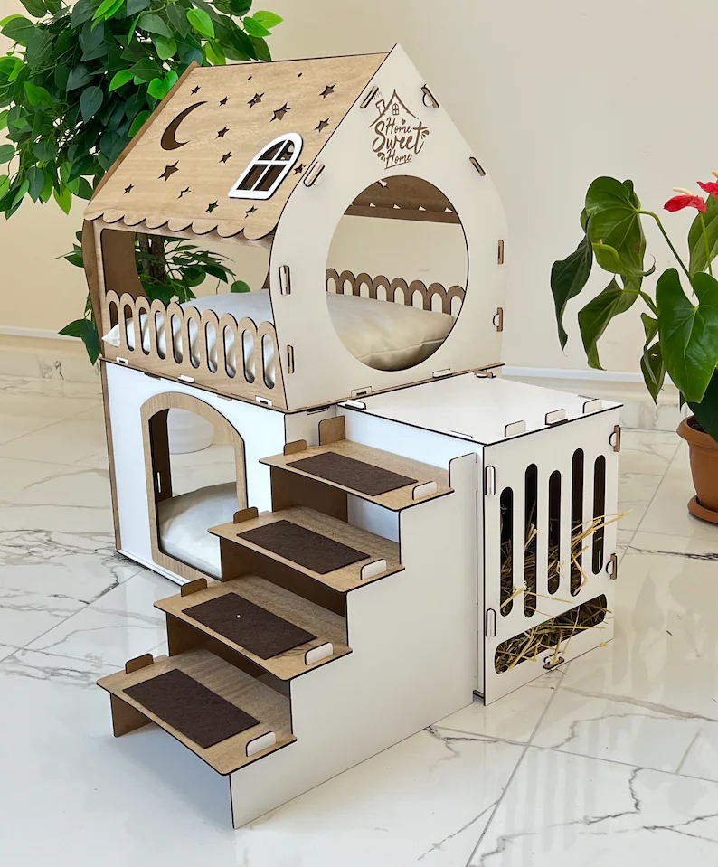 ODM OEM Luxury Two-Story Wooden Cat Tower Custom Modern Indoor Pet House Furniture for Cats Dogs Comfortable Removable Pet Beds