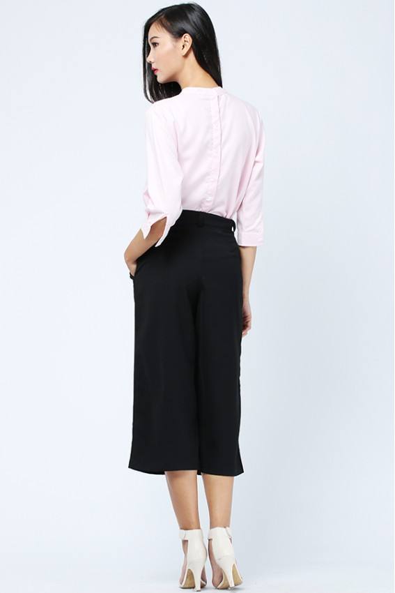 ODM/OEM Manufacturer Wide-legs Mid Waist Straight Cropped Culottes Female Trousers Women Pants Made in Vietnam