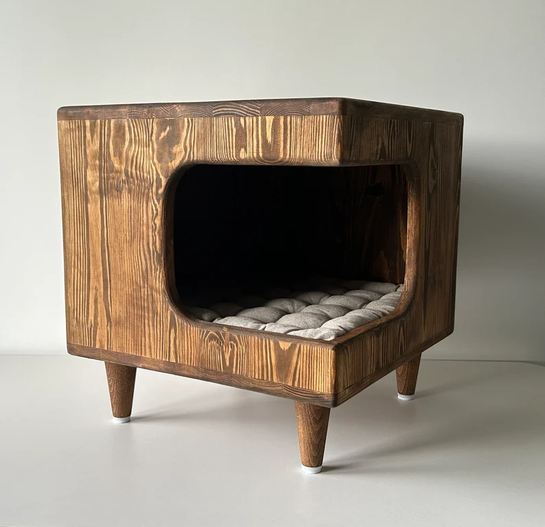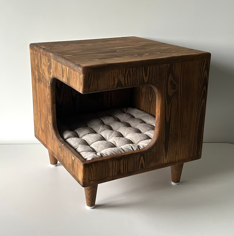 ODM OEM Modern Luxurious Cat House Cabinet Handcrafted Wood Pet Retreat Nightstand with Cushion Bed Perfect Gift for Pet Owners