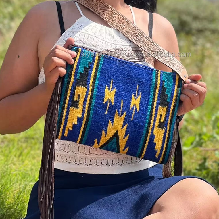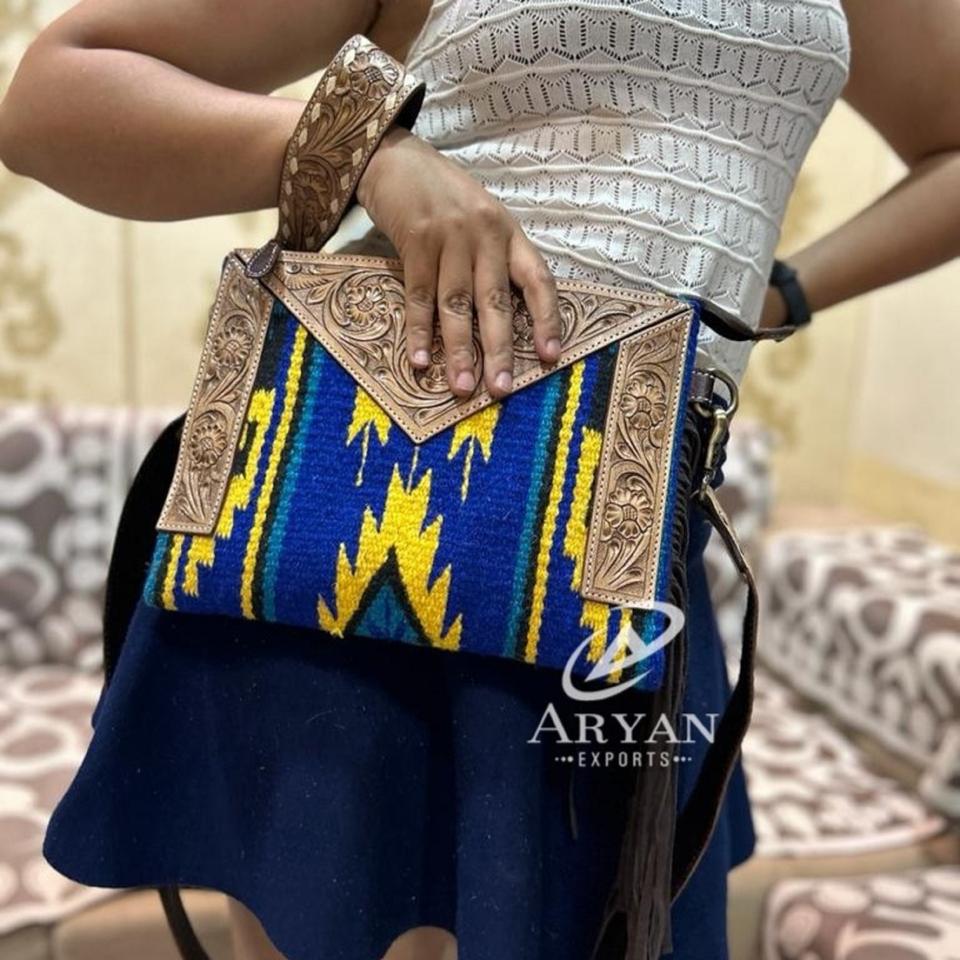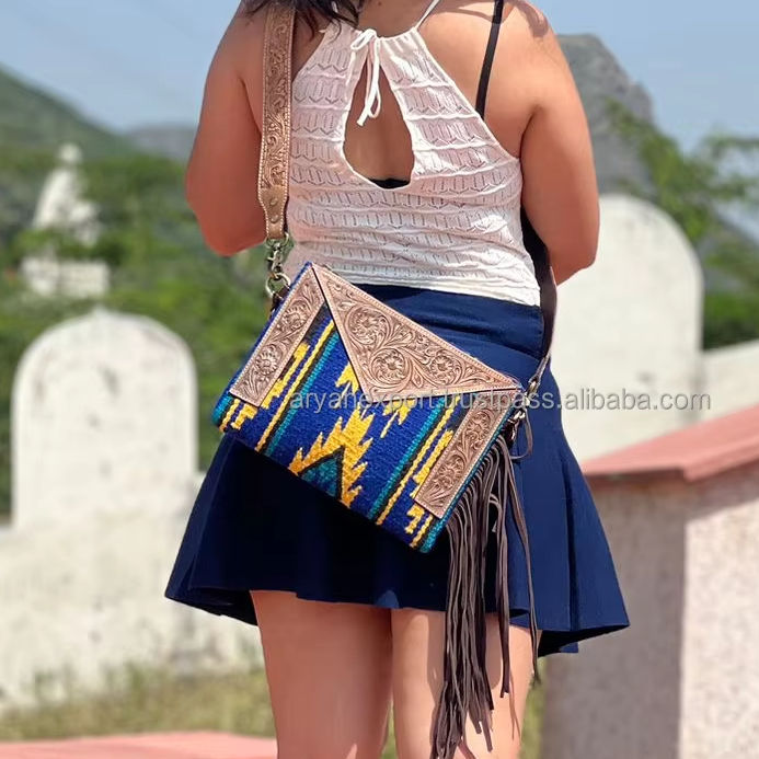 Product name:Hand Tooled Saddle Blanket Wristlet Fringe Crossbody Bag