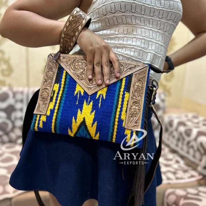 ODM OEM New Arrival Hand Tooled Saddle Blanket Fringe Wristlet Crossbody Bag for Women's High Quality Genuine Leather Handbags