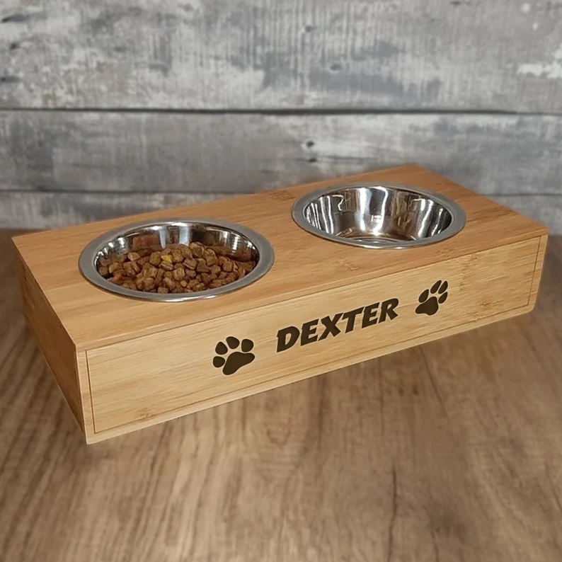 ODM OEM Customised Bamboo Wood Dog Bowls Unique Double Dish Pet Feeding Station Eco-Friendly Automatic Engraving Personalised