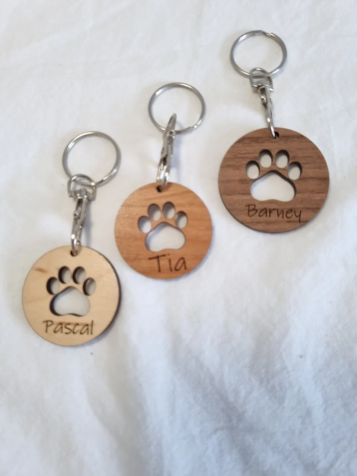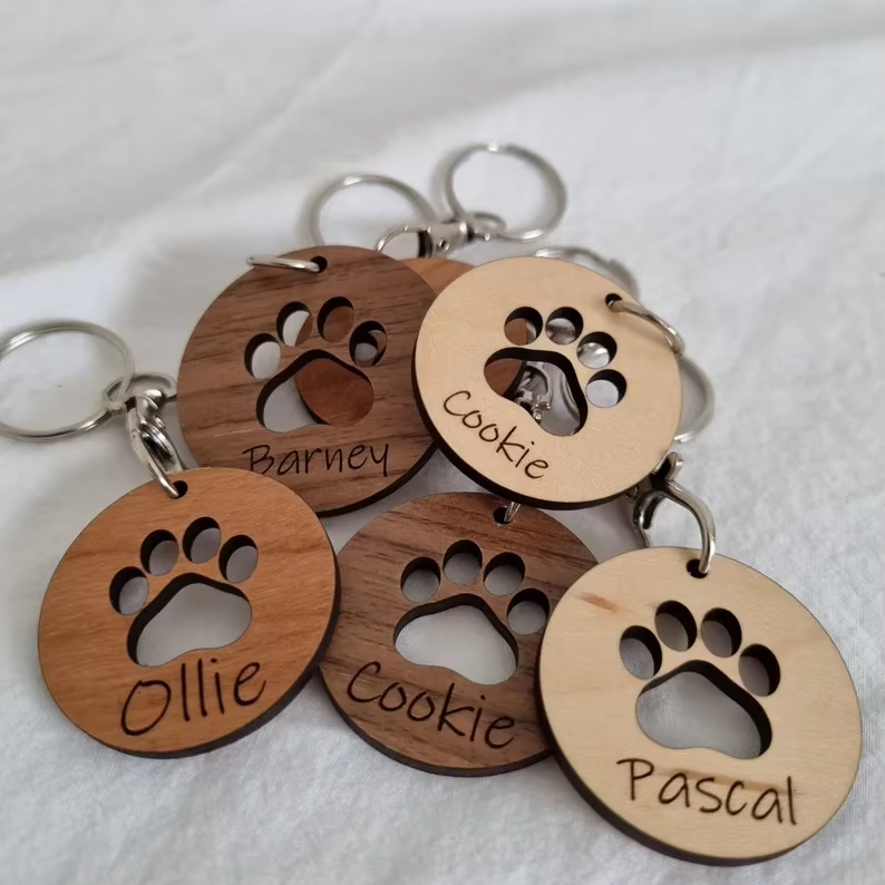 ODM OEM Modern Eco-Friendly Personalised Paw Print Dog Name Memorial Charm Pet Memory Urn Keychain Gift Custom Cut Wood Design